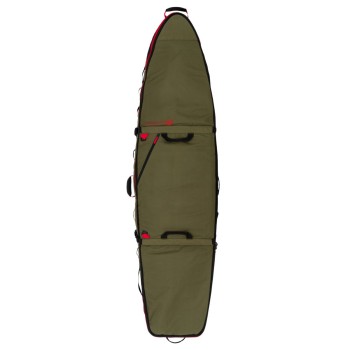 Si vous voyagez avec plusieurs planches, certains modèles de housses de voyage sont conçus pour y mettre deux à trois boards, grâce à des séparations internes et un volume plus important. C’est une option particulièrement intéressante pour les surf trips ou pour ceux qui souhaitent emporter un quiver complet.